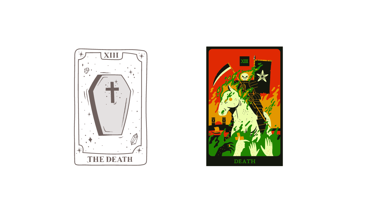 - 13(死神)→宿命、幻滅、放棄、分散、腐敗、集結、更新、変容